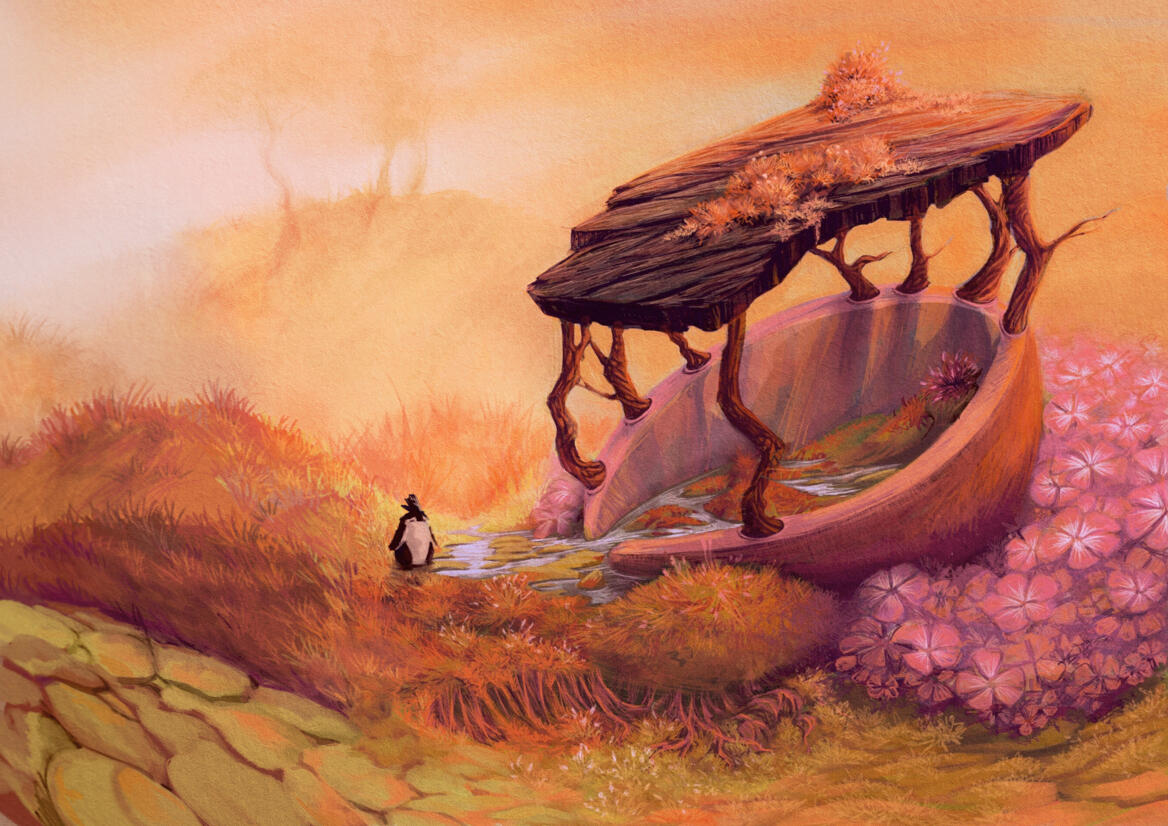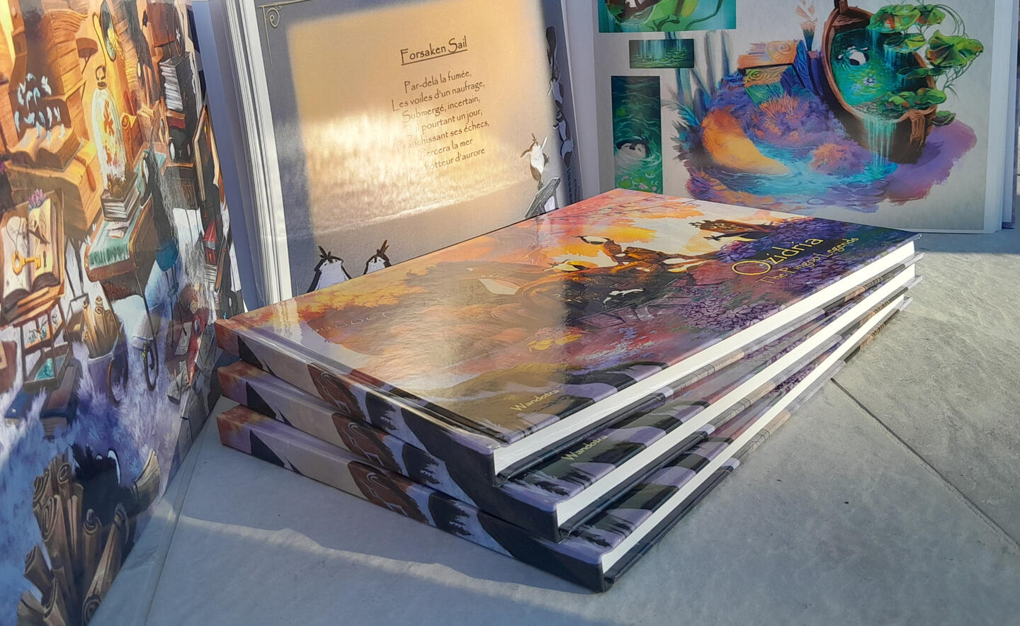 A travers parchemins et esquisses, plongez à la découverte de l'univers onirique et mystérieux d'Ozidria (Terre d'Illusions) et de ses Pingoos : de petites créatures au duvet de nuit qui poursuivent une quête d'empathie. A la fois innocents et joueurs, ils portent aussi un manteau de sagesse, dont les poches sont remplies de légendes surnaturelles.